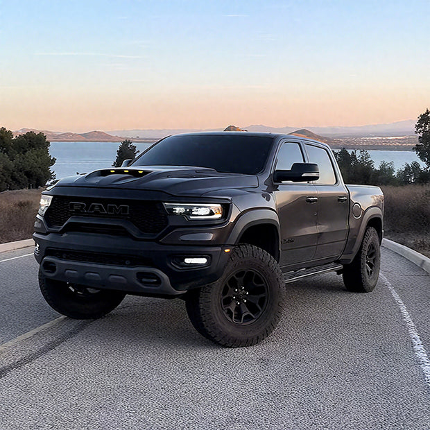 Hood Emblem Set Left Right for 2019–2024 RAM 1500 Heavy Duty Hemi 5.7 (Black/Red)