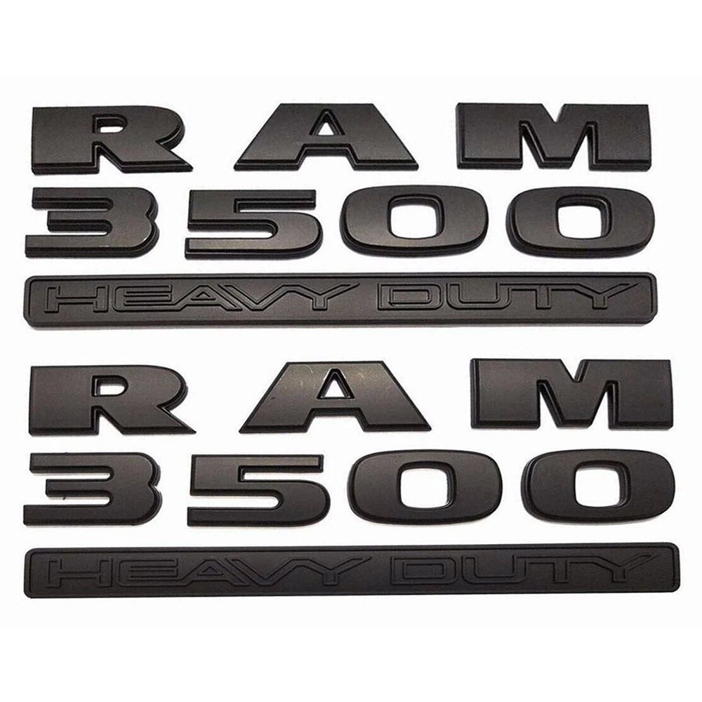 High-quality 3D raised emblem kit designed for 2015–2018 RAM 3500 trucks. Aftermarket, non-OEM replacement for factory "Heavy Duty & 4x4" side badges. Features authentic molded construction with black and red accents for a bold, durable refresh of your truck’s side profile.